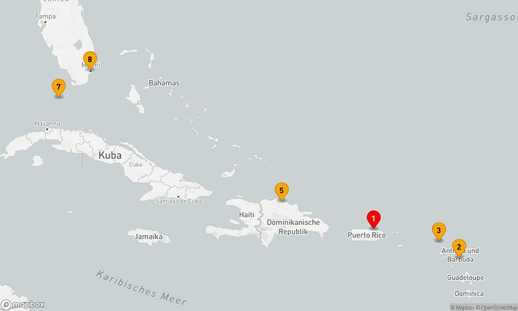 Die Reiseroute beginnt am 02. April 2026 in San Juan (Puerto Rico) und führt sie vom 02. April 2026 bis zum 09. April 2026 (7 Tage) nach Miami (Vereinigte Staaten).