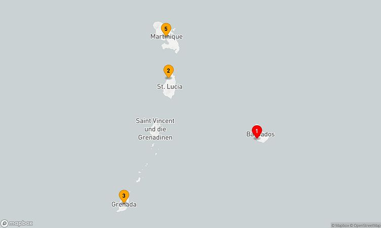 Auf Ihrer Route legen Sie unter anderem in den Häfen von Bridgetown, Castries und Saint George an, um das lebendige Flair und die Besonderheiten der jeweiligen Orte zu erleben.