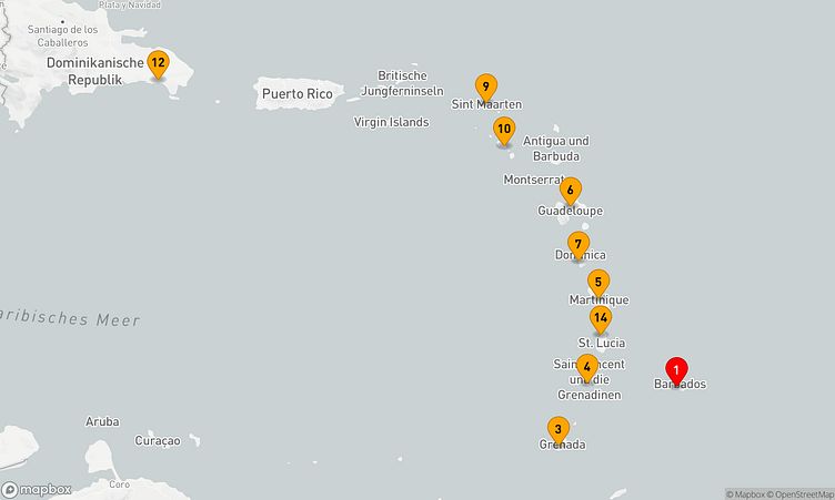 Von Bridgetown (Barbados) aus brechen Sie am 22. Februar 2027 auf, um nach 14 Tagen den Zielhafen Bridgetown (Barbados) zu erreichen, wo Ihre Reise endet.