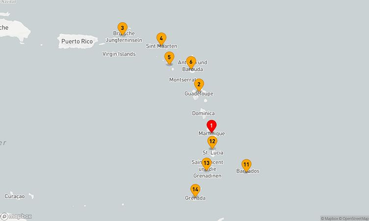 Die Route führt Sie zu den faszinierenden Häfen von Fort-de-France, Philipsburg und Pointe-à-Pitre, die mit besonderen Attraktionen und lebendigen Eindrücken auf Sie warten.