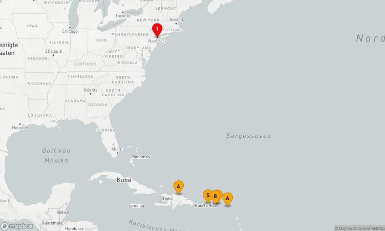 Auf Ihrer Reise besuchen Sie unter anderem die Häfen von New York City, Puerto Plata und Philipsburg, wo spannende Eindrücke von Land und Kultur auf Sie warten.
