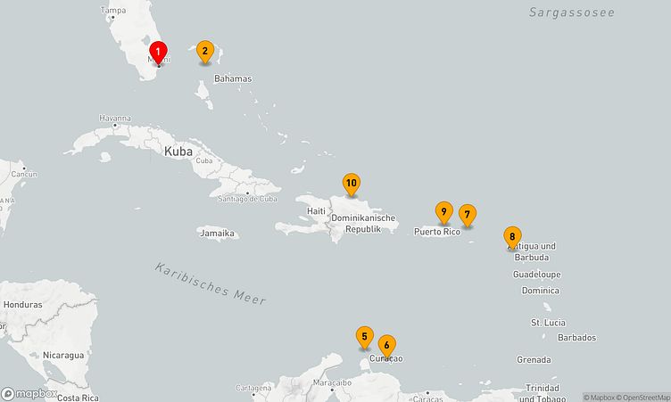 Freuen Sie sich auf Anläufe in Häfen wie Miami, Oranjestad und Basseterre, die Ihnen authentische Einblicke und besondere Erlebnisse bieten.