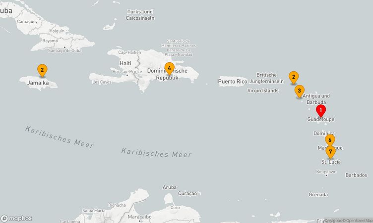 Auf Ihrer Reise besuchen Sie unter anderem die Häfen von Pointe-à-Pitre, Philipsburg und Basseterre, wo spannende Eindrücke von Land und Kultur auf Sie warten.