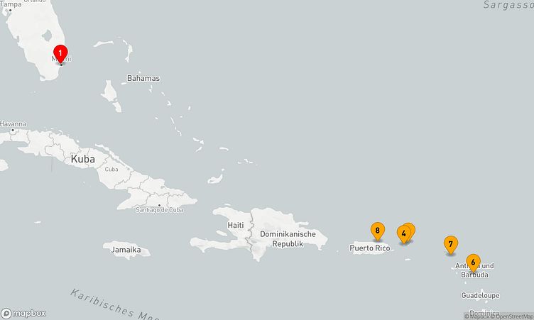 Auf Ihrer Reise besuchen Sie unter anderem die Häfen von Miami, Charlotte Amalie und Saint John's, wo spannende Eindrücke von Land und Kultur auf Sie warten.