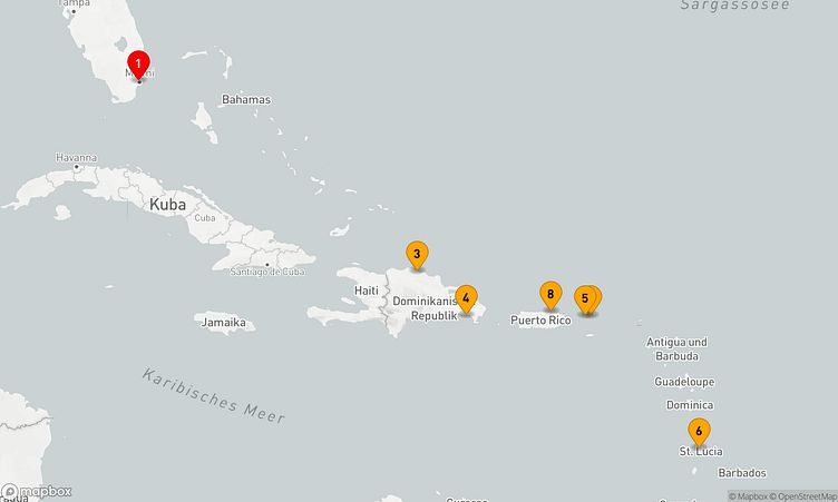 Am 09. Januar 2028 starten Sie in Miami (Vereinigte Staaten) und legen nach 7 Tagen, am 16. Januar 2028, in San Juan (Puerto Rico) wieder an.