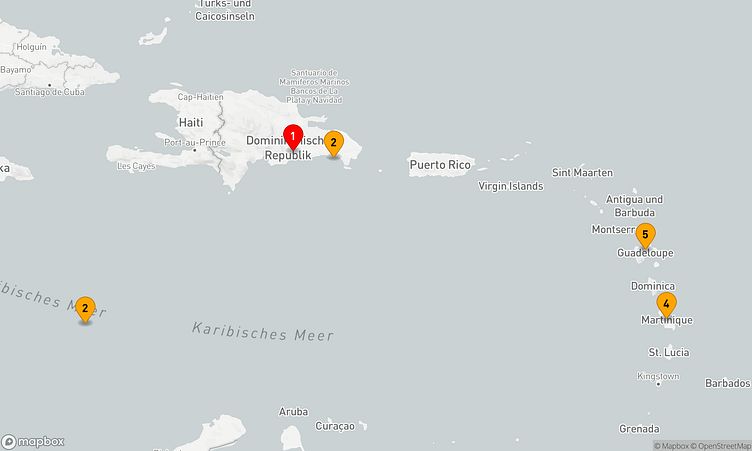Die Route startet am 02. März 2026 in Santo Domingo (Dominikanische Republik) und führt Sie über 4 Tage bis zu Ihrem Zielhafen Pointe-à-Pitre (Guadeloupe), wo Sie am 06. März 2026 ankommen.