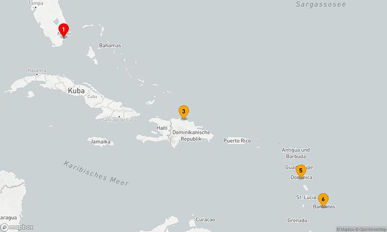 Während der Route legen Sie unter anderem in den Häfen von Miami, Puerto Plata und Roseau an, um das Flair und die Besonderheiten der Region zu entdecken.