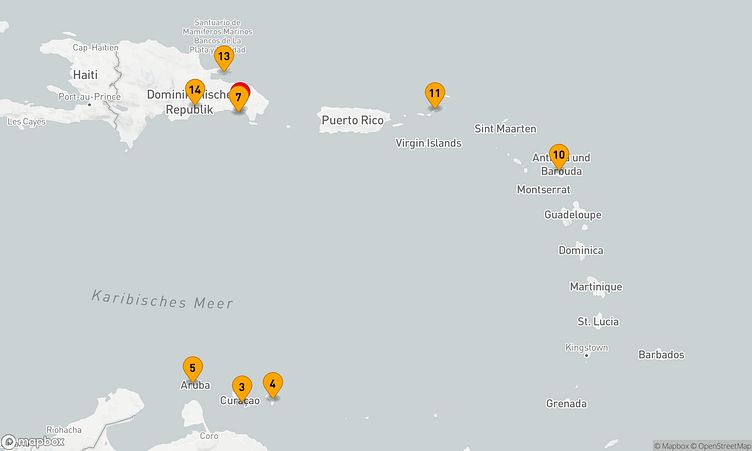 Ihre Route führt Sie unter anderem zu den faszinierenden Häfen von La Romana, Bonaire und Isla Catalina, wo Sie die Atmosphäre und das Leben vor Ort spüren können.