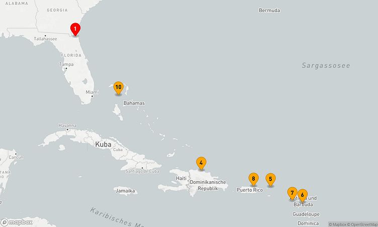 An Häfen wie Jacksonville, Puerto Plata und Saint John's haben Sie die Gelegenheit, die Region auf eine besondere Weise kennenzulernen und Neues zu entdecken.