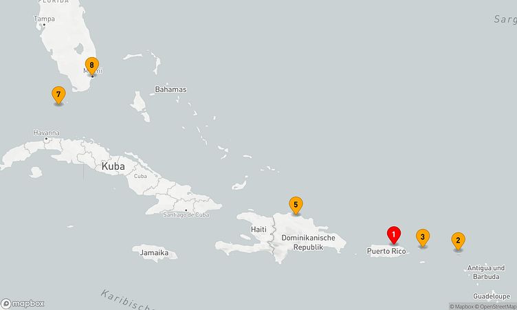 Ihre Reise beginnt in San Juan (Puerto Rico). Am 29. Dezember 2025 legen Sie ab und erreichen nach 7 Tagen, am 05. Januar 2026, den Zielhafen Miami (Vereinigte Staaten).