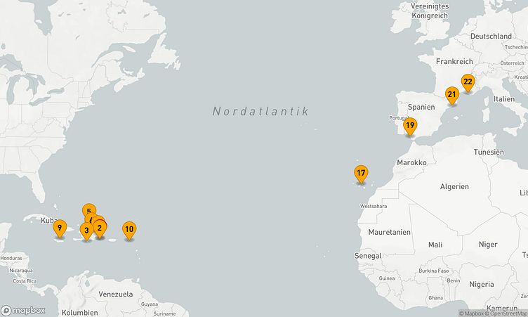 Während Ihrer Fahrt besuchen Sie unter anderem die Häfen von La Romana, Cabo Rojo und Ocho Rios, wo spannende Eindrücke von Land und Kultur auf Sie warten.