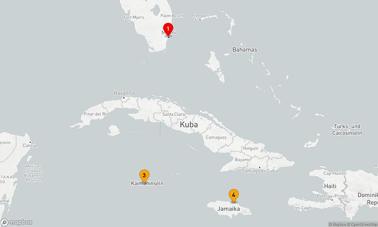 Auf der Route legen Sie unter anderem in den Häfen von Miami, George Town und Ocho Rios an, um das einzigartige Flair und die Besonderheiten der jeweiligen Umgebung zu erkunden.