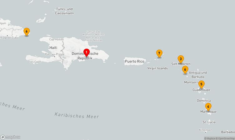 Während der Route halten Sie unter anderem in den Häfen von Santo Domingo, Philipsburg und Pointe-à-Pitre, um in das Flair und die Besonderheiten der Umgebung einzutauchen.