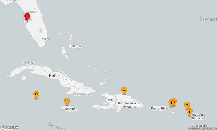 An Häfen wie Tampa, Saint Thomas und Tortola haben Sie die Gelegenheit, die Region auf eine besondere Weise kennenzulernen und Neues zu entdecken.