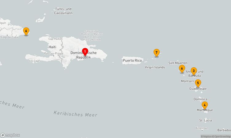 Bei Häfen wie Santo Domingo, Saint John's und Pointe-à-Pitre haben Sie die Möglichkeit, die Region auf besondere Weise zu erkunden und Neues zu entdecken.
