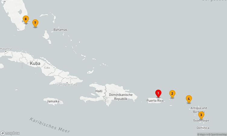 Am 09. Januar 2028 starten Sie in Miami (Vereinigte Staaten) und legen nach 7 Tagen, am 16. Januar 2028, in San Juan (Puerto Rico) wieder an.