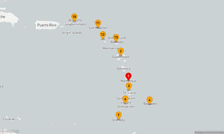 Ihre Reiseroute führt Sie zu den beeindruckenden Häfen von Fort-de-France, Bridgetown und Pointe-à-Pitre, wo Sie die Kultur und das lebendige Treiben vor Ort hautnah erleben können.