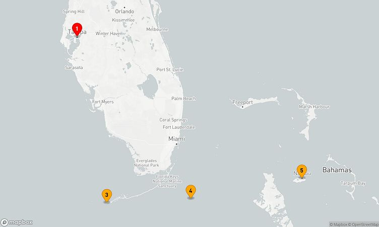Auf Ihrer Reise besuchen Sie unter anderem die Häfen von Tampa, Key West und Nassau, die Ihnen spannende Eindrücke und einzigartige Entdeckungen ermöglichen.