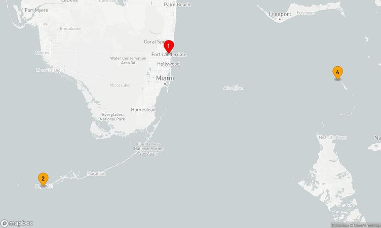 Die Route startet am 20. April 2026 in Fort Lauderdale (Vereinigte Staaten) und führt Sie vom 20. April 2026 bis zum 24. April 2026 (4 Tage) wieder nach Fort Lauderdale (Vereinigte Staaten).