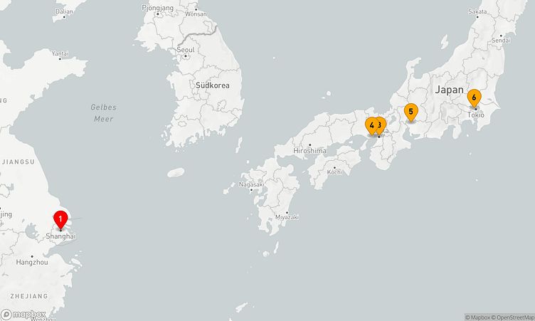 Auf Ihrer Reise besuchen Sie unter anderem die Häfen von Shanghai, Osaka und Kobe, wo spannende Eindrücke von Land und Kultur auf Sie warten.