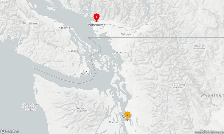 Am 24. April 2026 starten Sie in Vancouver (Kanada) und legen nach einem Tag, am 25. April 2026, wieder in Seattle (Vereinigte Staaten) an.