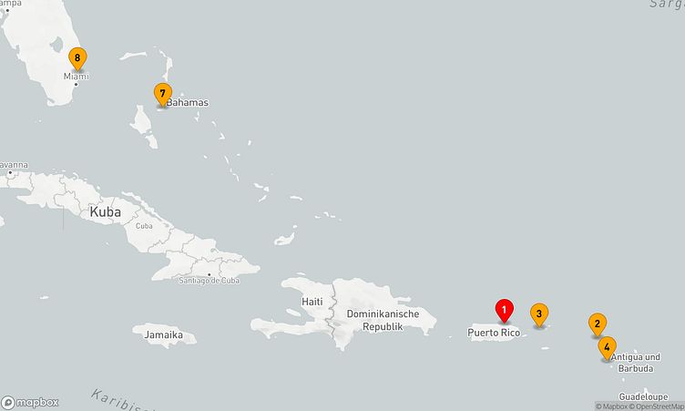Während der Reise besuchen Sie unter anderem die Häfen von San Juan, Philipsburg und Basseterre, die Ihnen spannende Eindrücke und einzigartige Entdeckungen bieten.