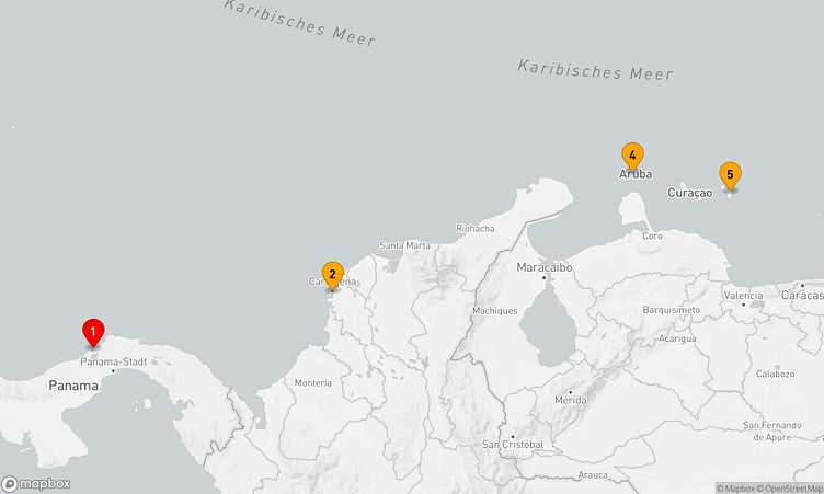 Während der Route halten Sie unter anderem in den Häfen von Colón, Cartagena (CO) und Bonaire, um in das Flair und die Besonderheiten der Umgebung einzutauchen.