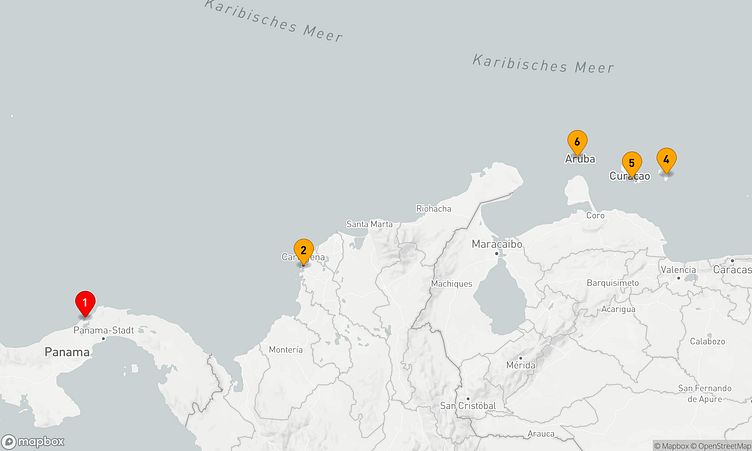 Während der Reise besuchen Sie unter anderem die Häfen von Colón, Cartagena (CO) und Willemstad, die Ihnen spannende Eindrücke und einzigartige Entdeckungen bieten.