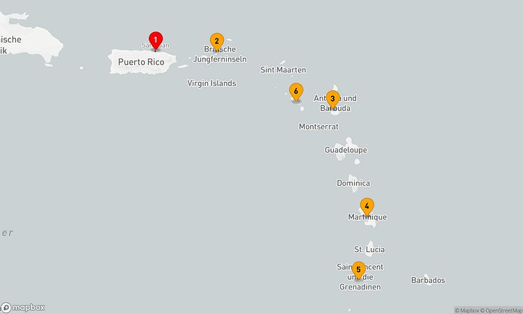 Auf Ihrer Reise besuchen Sie unter anderem die Häfen von San Juan, Tortola und Fort-de-France, wo spannende Eindrücke von Land und Kultur auf Sie warten.