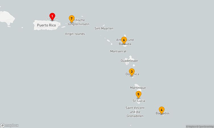 Auf Ihrer Reise besuchen Sie unter anderem die Häfen von San Juan, Roseau und Castries, die spannende Erlebnisse und einzigartige Entdeckungen bereithalten.