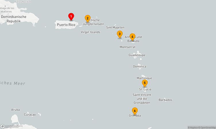 Während Ihrer Reise besuchen Sie unter anderem die Häfen von San Juan, Saint Thomas und Saint John's, wo faszinierende Einblicke in Land und Kultur auf Sie warten.