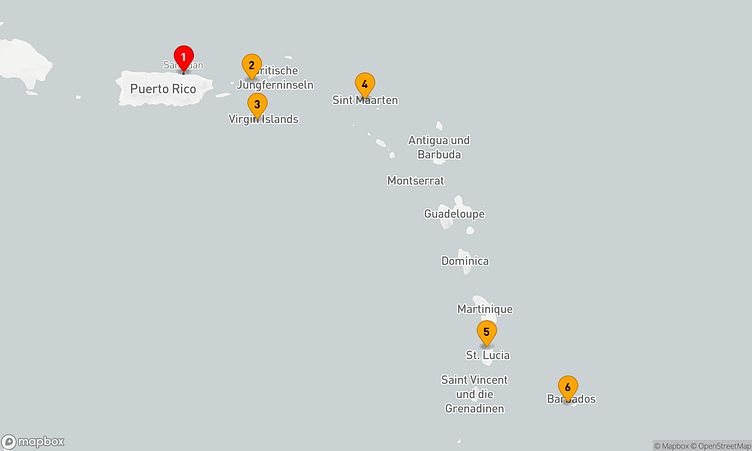 Die Reiseroute startet am 11. Dezember 2027 in San Juan (Puerto Rico) und führt Sie vom 11. Dezember 2027 bis zum 18. Dezember 2027 (7 Tage) zurück nach San Juan (Puerto Rico).