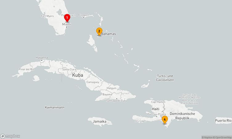 Auf Ihrer Reise besuchen Sie unter anderem die Häfen von Fort Lauderdale, Nassau und Falmouth, wo spannende Eindrücke von Land und Kultur auf Sie warten.