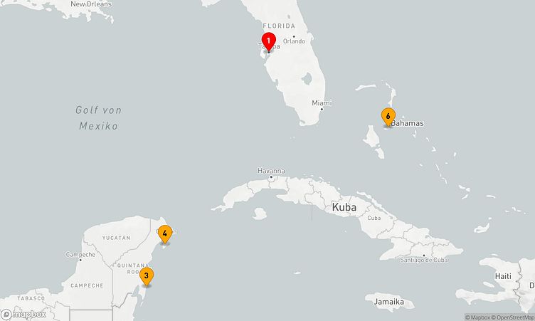 Während der Reise besuchen Sie unter anderem die Häfen von Tampa, Puerto Costa Maya Mahahual und Nassau, die Ihnen spannende Eindrücke und einzigartige Entdeckungen bieten.