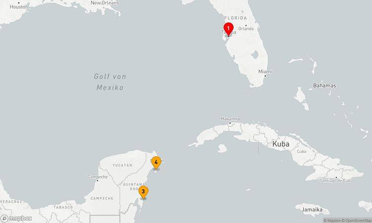 Während der Reise besuchen Sie unter anderem die Häfen von Tampa, Puerto Costa Maya Mahahual und Cozumel, die Ihnen spannende Eindrücke und einzigartige Entdeckungen bieten.