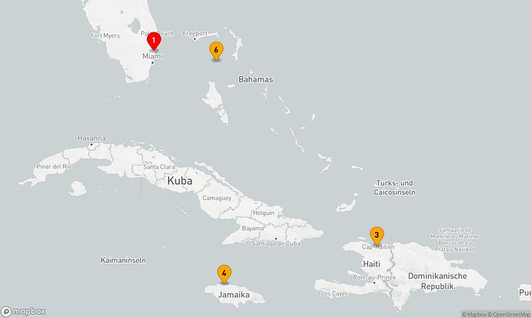 Nach Ihrem Start am 07. Juni 2026 in Fort Lauderdale (Vereinigte Staaten) führt Sie die Route über 6 Tage bis zu Ihrem Zielhafen Fort Lauderdale (Vereinigte Staaten), wo Sie am 13. Juni 2026 ankommen.