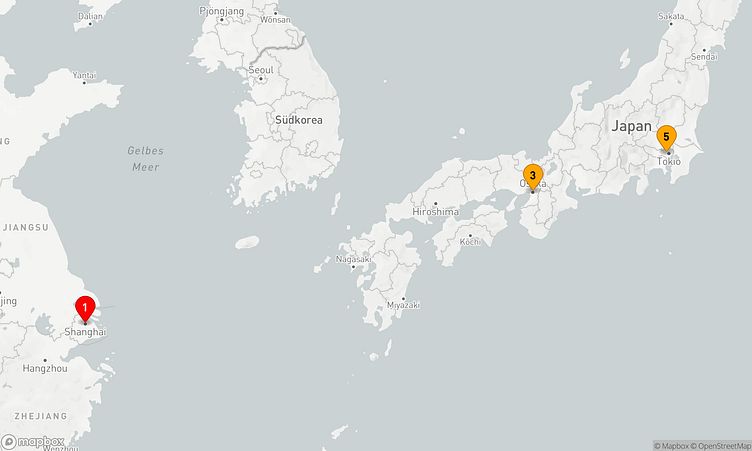 Diese Kreuzfahrt führt Sie zu den beeindruckenden Häfen von Shanghai, Osaka und Tokyo, die mit ihren einzigartigen Sehenswürdigkeiten und lebendigen Atmosphären auf Sie warten.