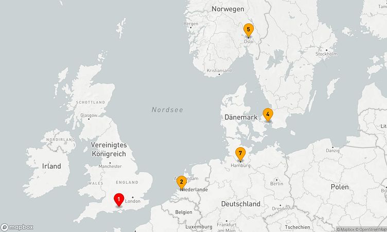 Während der Route legen Sie unter anderem in den Häfen von Southampton, Haugesund und Olden an, um das einzigartige Flair und die Besonderheiten der jeweiligen Orte zu erleben.