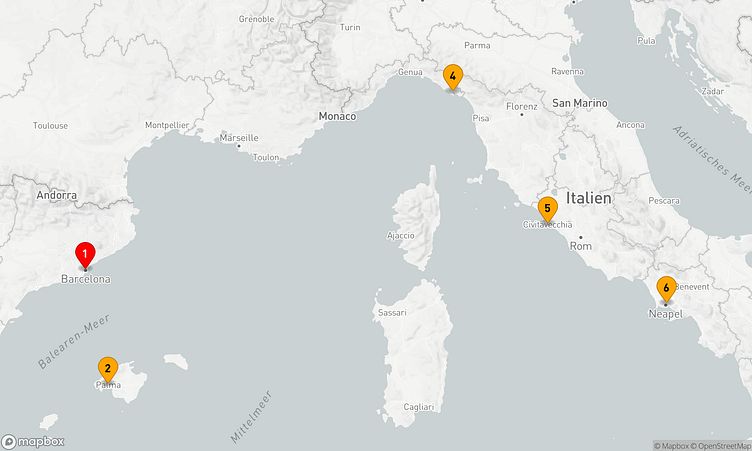 Auf dieser Reise erwarten Sie Stopps in den Häfen von Barcelona, Palma de Mallorca und Rom / Civitavecchia, wo Sie lokale Highlights und unvergessliche Eindrücke sammeln.