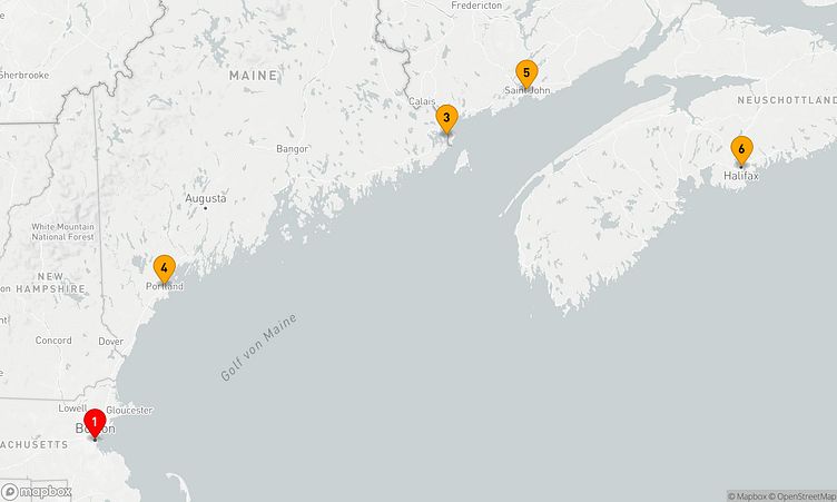 Während der Route halten Sie unter anderem in den Häfen von Boston, Eastport und Saint John, um in das Flair und die Besonderheiten der Umgebung einzutauchen.