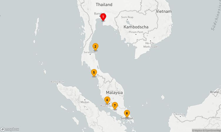 Freuen Sie sich auf Anläufe in Häfen wie -, Ko Samui und Port Klang, die Ihnen authentische Einblicke und einzigartige Erlebnisse bieten.