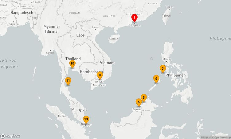 Während Ihrer Reise besuchen Sie unter anderem die Häfen von Hongkong, Puerto Princesa und Phú My, wo spannende Einblicke in Land und Kultur auf Sie warten.