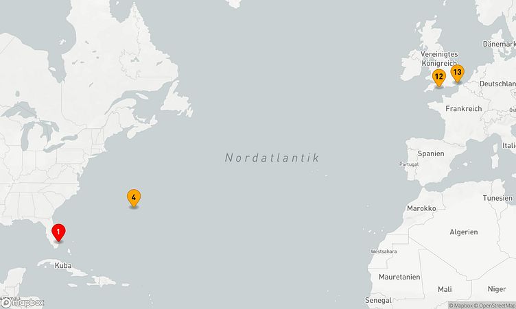 Von Fort Lauderdale (Vereinigte Staaten) aus brechen Sie am 04. April 2027 auf, um nach 12 Tagen den Zielhafen Dover (Vereinigtes Königreich) zu erreichen, wo Ihre Reise endet.