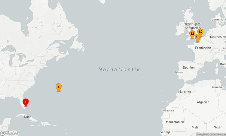 Am 04. April 2026 beginnt Ihre Reise in Fort Lauderdale (Vereinigte Staaten), und nach 13 Tagen erreichen Sie am 17. April 2026 den Hafen von Dover (Vereinigtes Königreich).