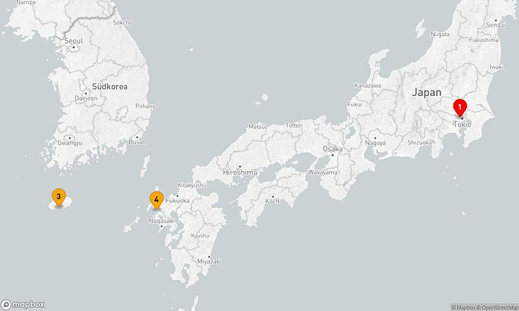 Auf dieser Tour machen Sie Halt in den Häfen von Tokyo, Gangjeong (Seogwipo-si) und Sasebo, wo Sie lokale Highlights entdecken und unvergessliche Eindrücke sammeln können.