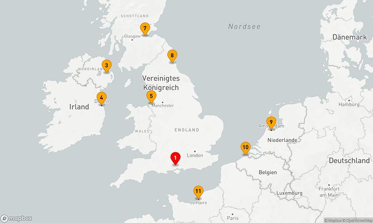 Diese Kreuzfahrt bringt Sie zu den beeindruckenden Häfen von Southampton, Belfast und Edinburg / Leith, die mit einzigartigen Sehenswürdigkeiten und lebendigen Eindrücken auf Sie warten.