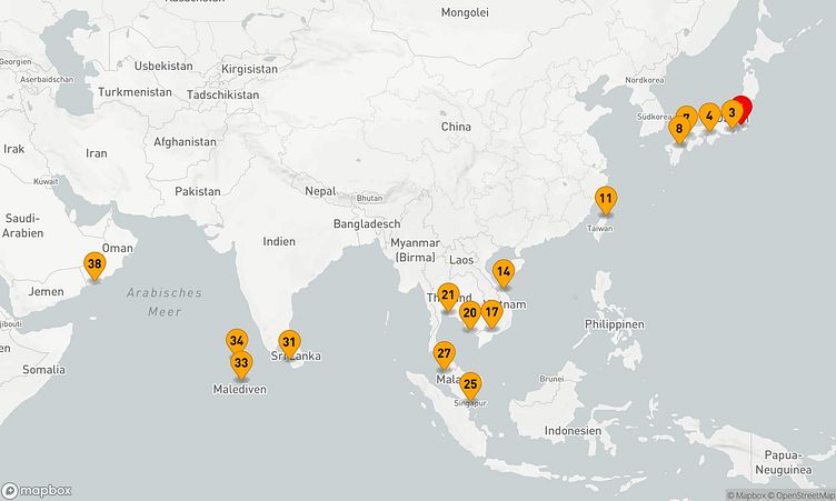 Während der Route halten Sie unter anderem in den Häfen von Tokyo (Yokohama), Osaka und Ho-Chi-Minh-Stadt, um in das Flair und die Besonderheiten der Umgebung einzutauchen.