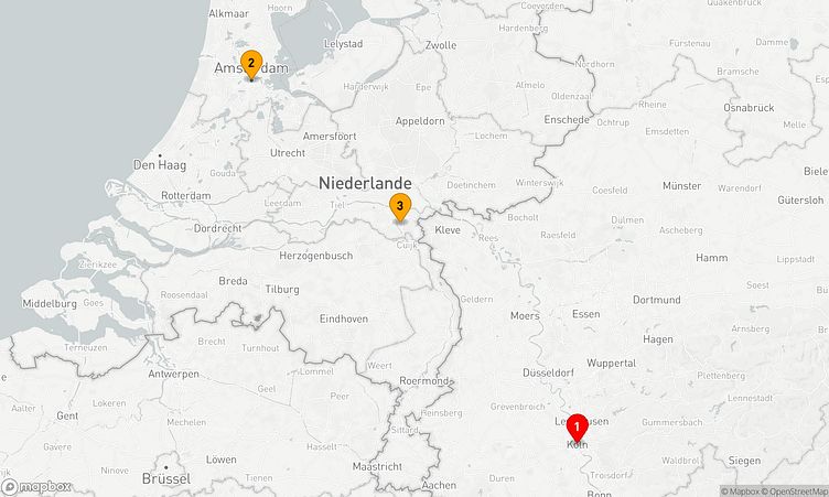 Diese Kreuzfahrt bringt Sie zu den beeindruckenden Häfen von Köln, Amsterdam und Nijmegen, die mit einzigartigen Sehenswürdigkeiten und lebendigen Eindrücken auf Sie warten.