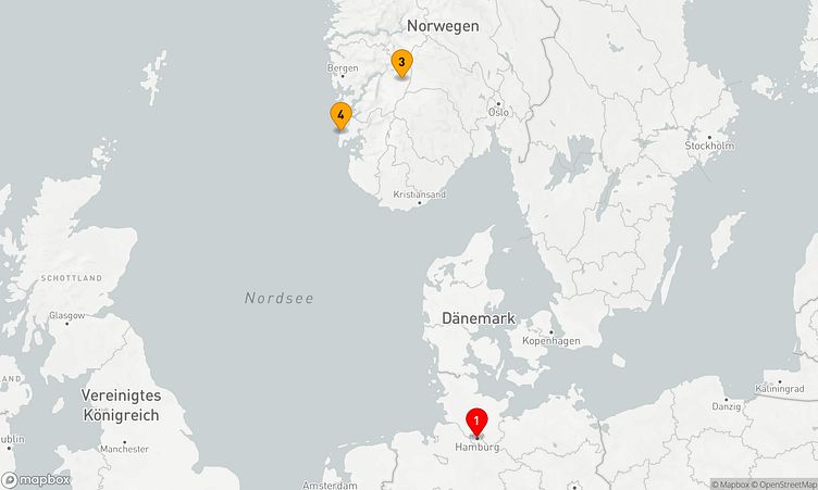 Ihre Route führt Sie unter anderem zu den faszinierenden Häfen von Hamburg, Eidfjord und Stavanger, wo Sie die Atmosphäre und das Leben vor Ort spüren können.