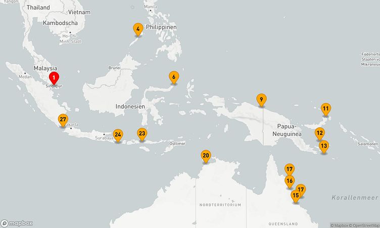 Diese Kreuzfahrt bringt Sie zu den beeindruckenden Häfen von Singapur, Rabaul und Great Barrier Reef, die mit einzigartigen Sehenswürdigkeiten und lebendigen Eindrücken auf Sie warten.